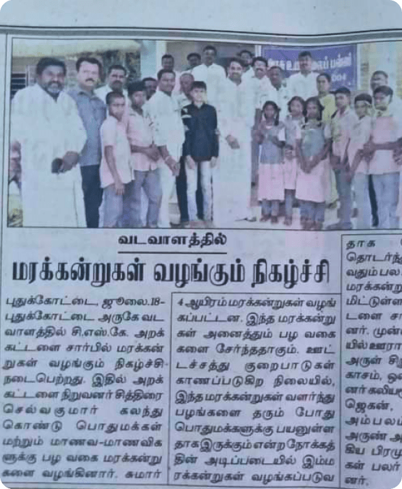 CSK Global Foundation is committed to combat global warming and make ground level changes by planting 1 crore fruit tree saplings and by providing education, employment and livelihood assistance to the downtrodden people in the rural areas.
